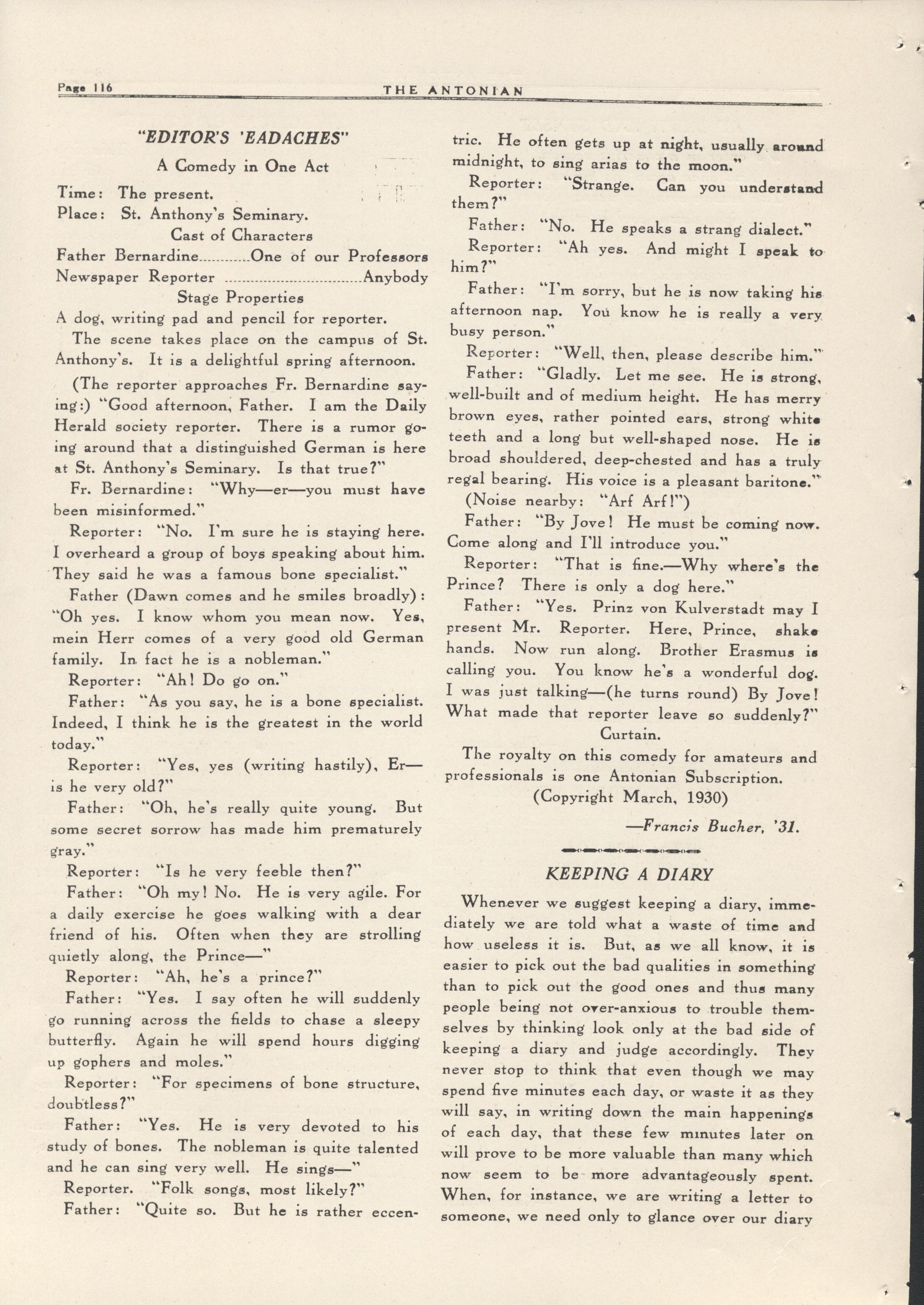 Antonian Volume 10 Issue 8 - March 1930 Volume: 10Issue: 8Publish Year: 1930Month Published: March Read more about Antonian Volume 10 Issue 8 - March 1930