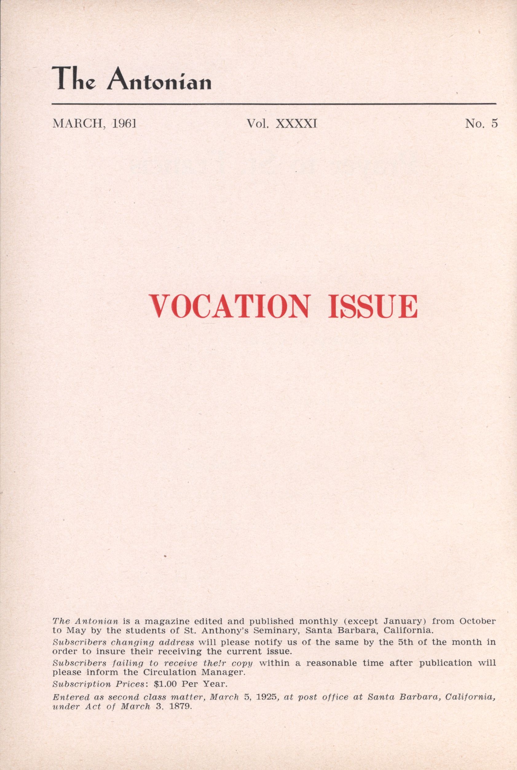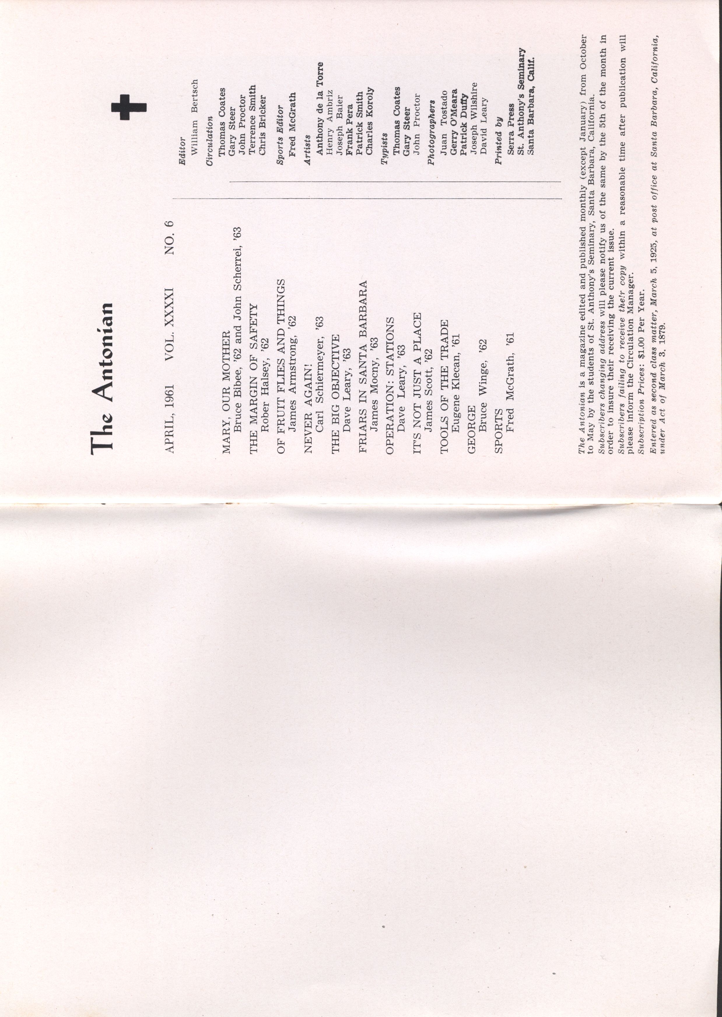 Antonian Volume 41 Issue 5 - March 1961 Volume: 41Issue: 5Publish Year: 1961Month Published: March Read more about Antonian Volume 41 Issue 5 - March 1961