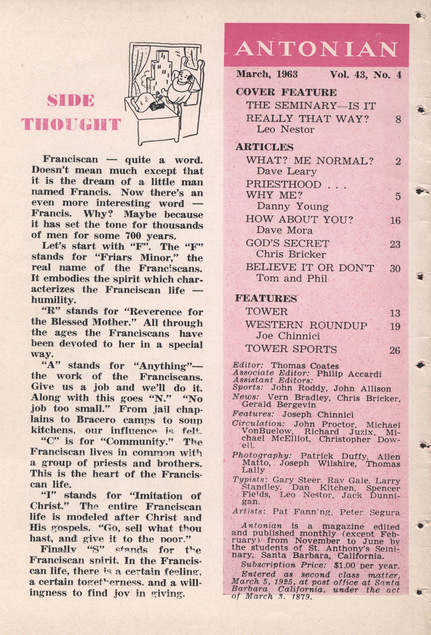 Antonian Volume 43 Issue 4 - March 1963 Volume: 43Issue: 4Publish Year: 1963Month Published: March Read more about Antonian Volume 43 Issue 4 - March 1963