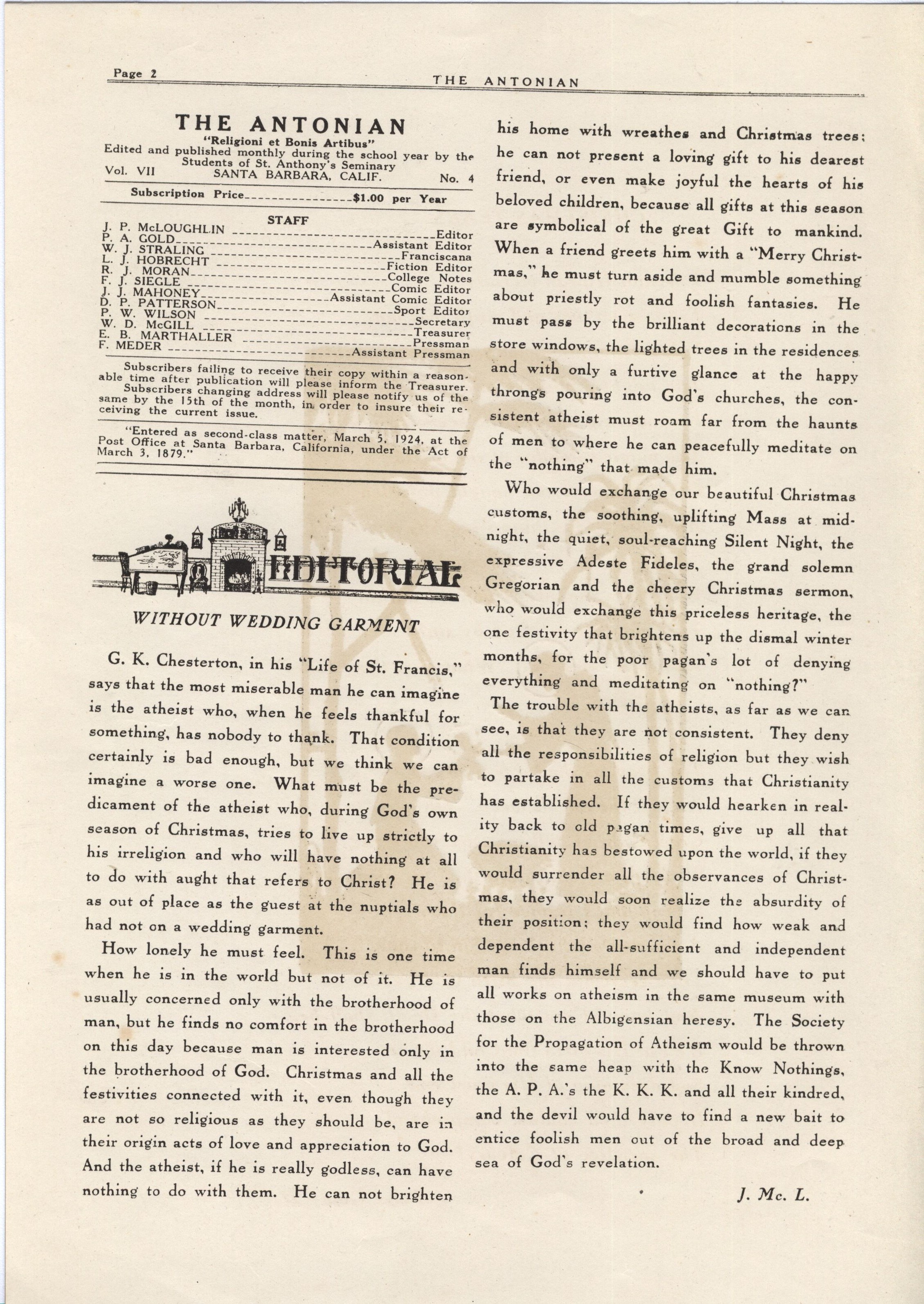 Antonian Volume 7 Issue 4 - Christmas Issue 1926